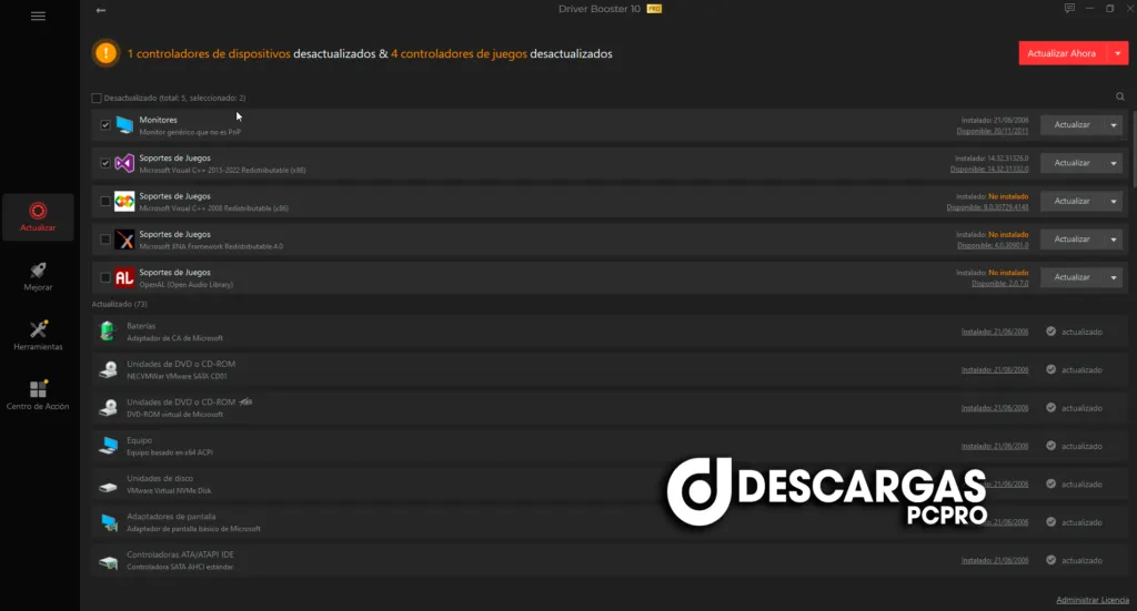 IObit Driver Booster Pro es el paso inicial para evitar errores de hardware, la pérdida del sistema y vulnerabilidades de seguridad ocultas. Actualizar el controlador regular también es una forma efectiva de mejorar el rendimiento general de su computadora y maximizar su experiencia de juego. Si bien este proceso puede ser peligroso y frustrante si se realiza manualmente. IObit Driver Booster Pro se presenta para descargar y actualizar el controlador automáticamente con solo un clic. Basado en la biblioteca en la nube, IObit Driver Booster Pro siempre puede ser la primera persona en determinar el controlador obsoleto y descargarlo y actualizarlo con una velocidad infinita. Con la función de copia de seguridad, IObit Driver Booster Pro es una solución fácil, eficiente y arriesgada para mantener su controlador actualizado.